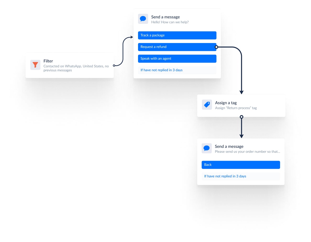 Quickley allows you to automate and streamline your communication with users. Your team will no longer waste time on mundane tasks. The service comes with the following functions: